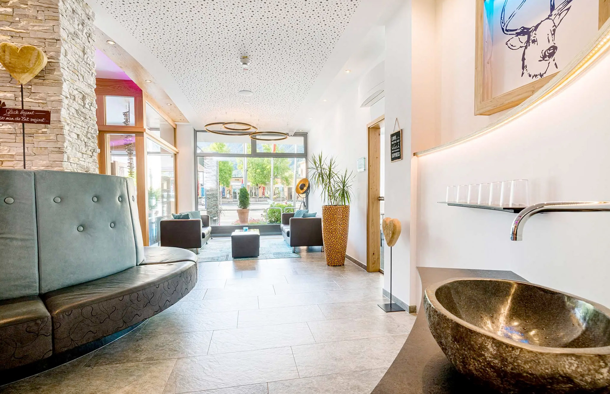 Auf über 300qm befindet sich die Hotellobby, sowie die stylische Hotelbar & Lounge „Maximilian´s“ mit Feuerstelle. Das gesamte Hotel ist vollklimatisiert und mit highspeed WLAN ausgestattet.