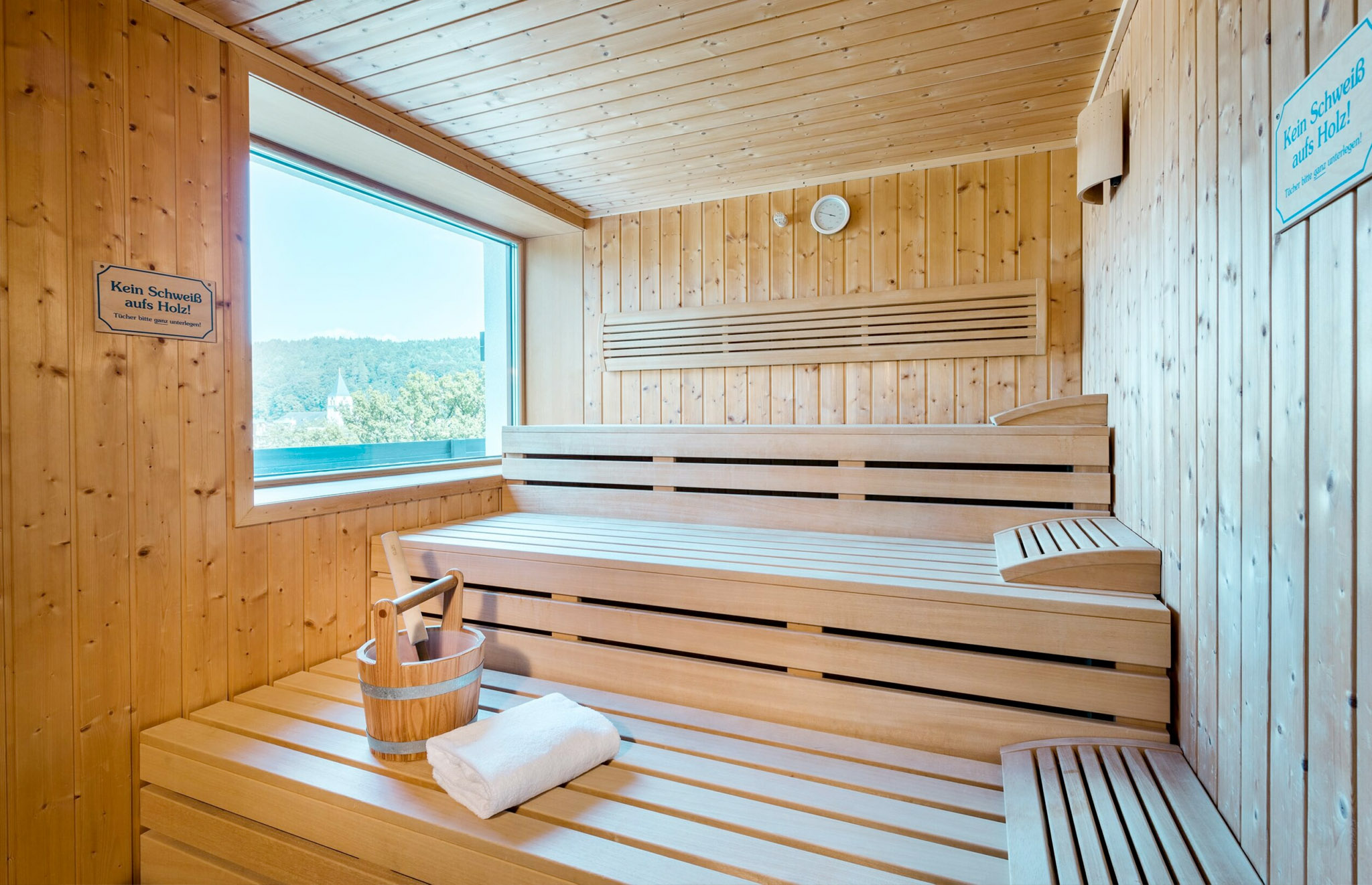 Im 5. Stock befindet sich über den Dächern von Bad Reichenhall unsere kleine Wellnessoase. Nicht überdimensioniert, sondern eher klein und fein beschreiben die Räumlichkeiten perfekt. Schwitzen Sie in der finnischen Sauna bei 90 Grad und atmen Sie die frische und wohltuende Bergluft auf der Sonnenterrasse.