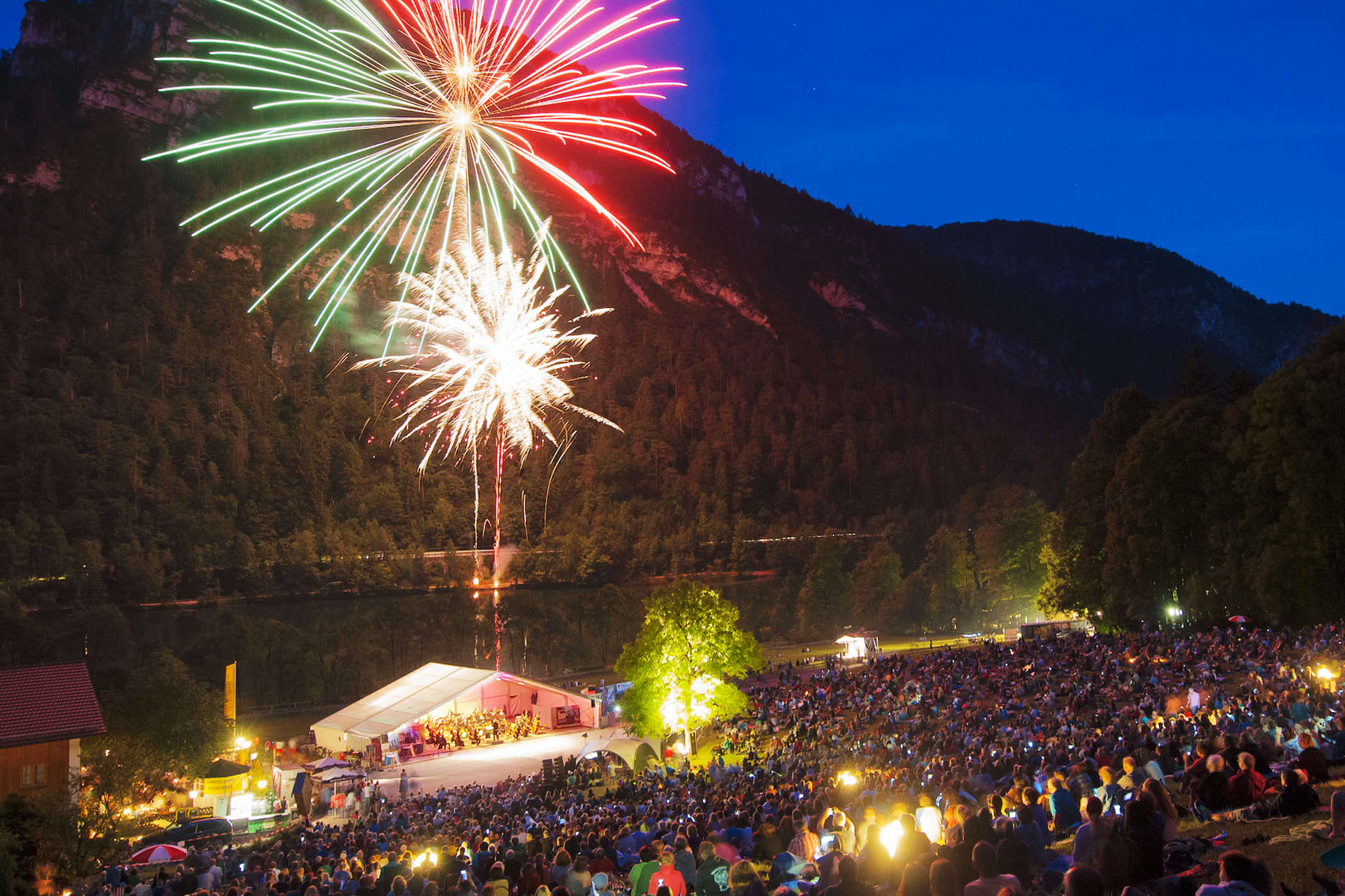 Die Alpen haben viele Gipfel, aber nur einen Höhepunkt: Thumsee brennt! Das Sommernachtskonzert der Bad Reichenhaller Philharmoniker mit großem Feuerwerk vor der beeindruckenden Bergkulisse am Thumsee zieht Jahr für Jahr bis zu 7.000 Begeisterte aus Nah und Fern an. Spritzige und ergreifende Melodien vor atemberaubender Bergkulisse: „Thumsee brennt“ ist der kulturelle Höhepunkt des Jahres in der Alpenstadt Bad Reichenhall.