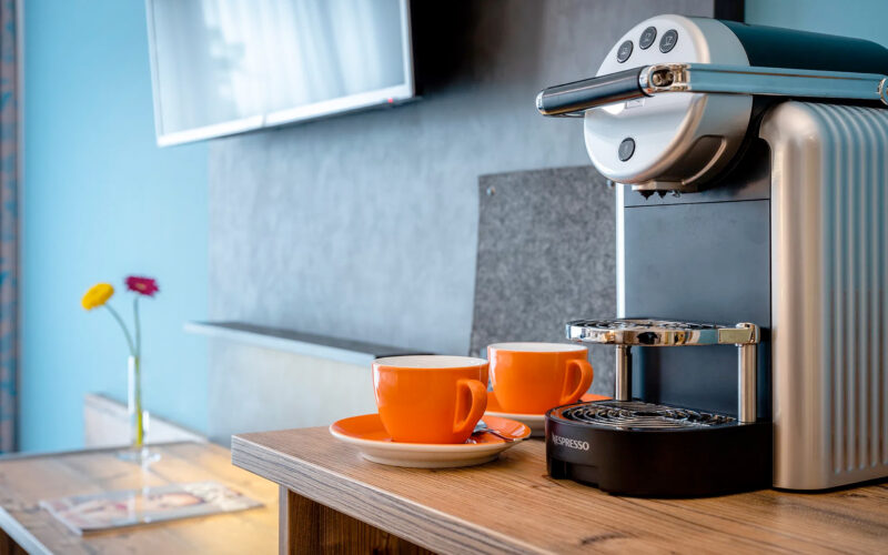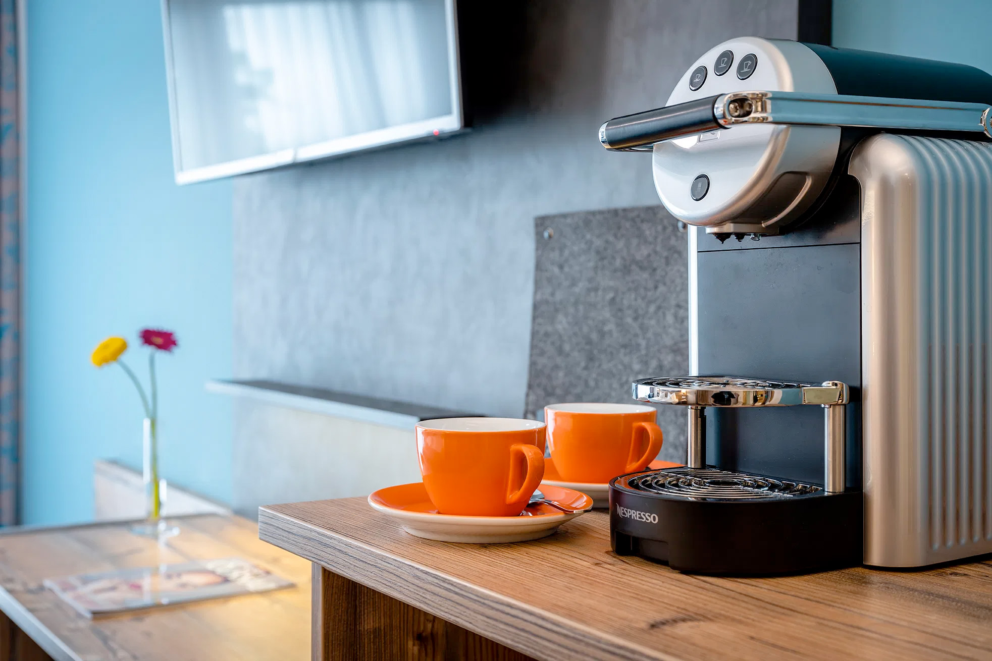 Das Doppelzimmer Deluxe Balkon ist mit einem 50'' Flat-TV, Safe, Nespresso Kaffeemaschine, Minibar und einem Telefon ausgestattet. Das Badezimmer verfügt über ein integriertes Radio, beleuchteten Kosmetikspiegel, Föhn sowie Dusche mit Rainshower und WC.