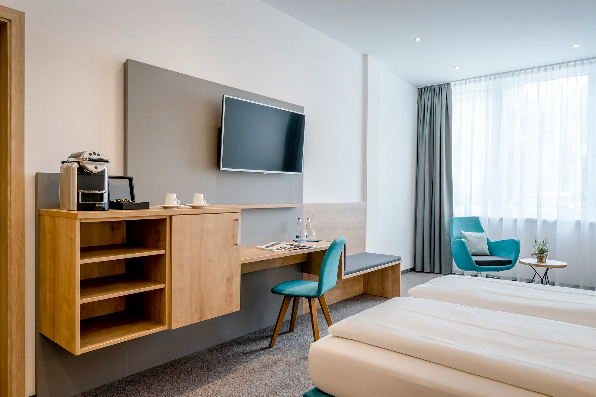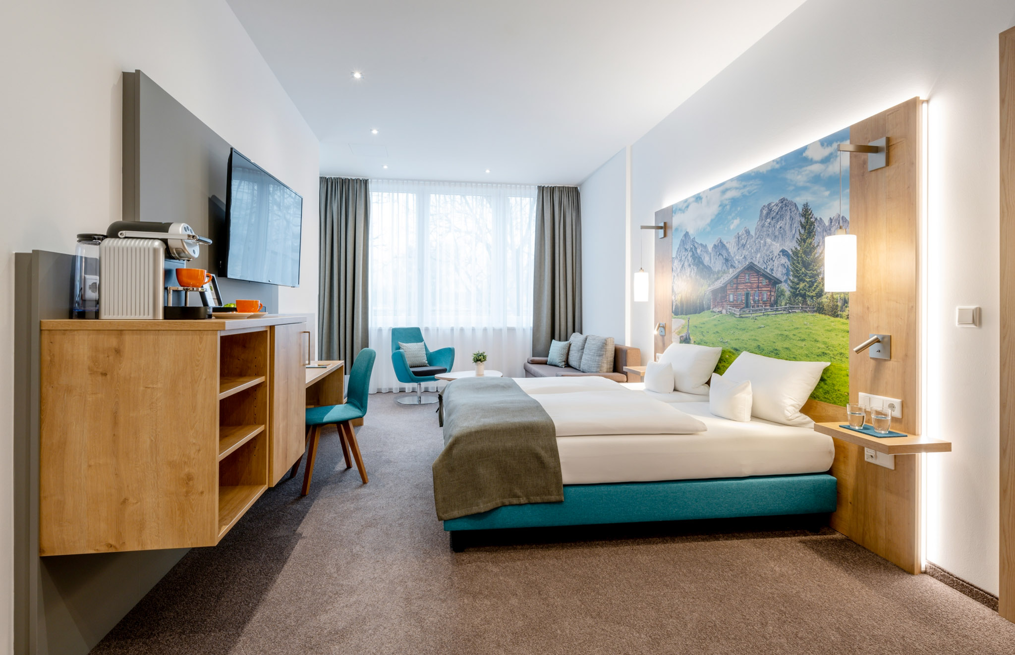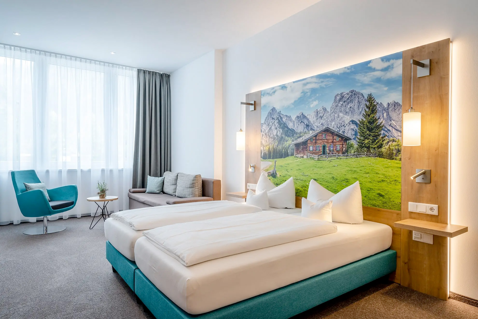 Unsere Zimmer sind als Einzel- oder Doppelzimmer teils auch mit getrennten Betten buchbar. In vielen unserer Zimmer ist eine dritte Aufbettung auf einer Schlafcouch möglich. Bitte setzen Sie sich hierzu mit uns in Verbindung.