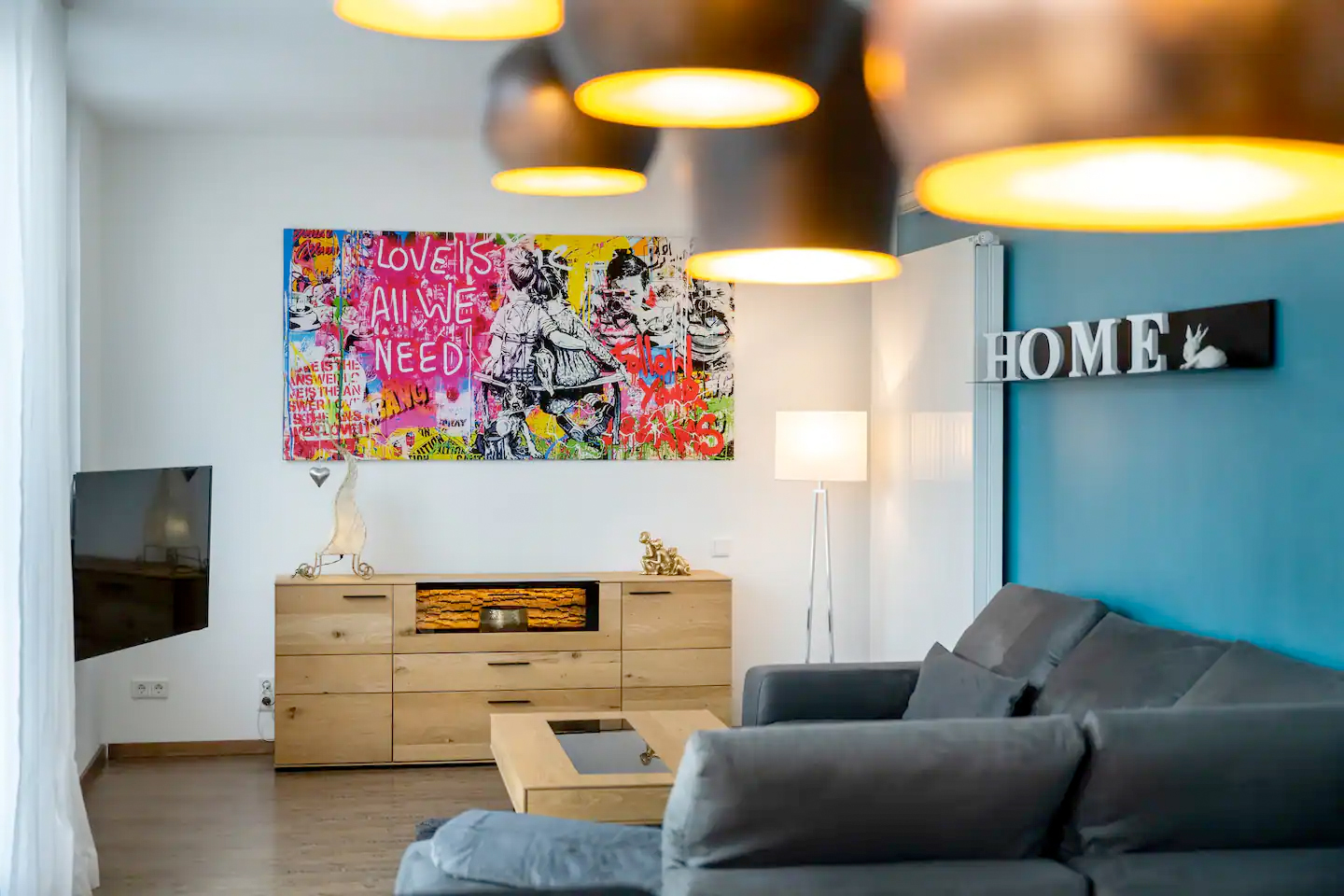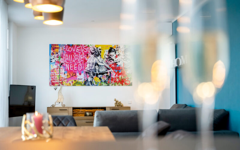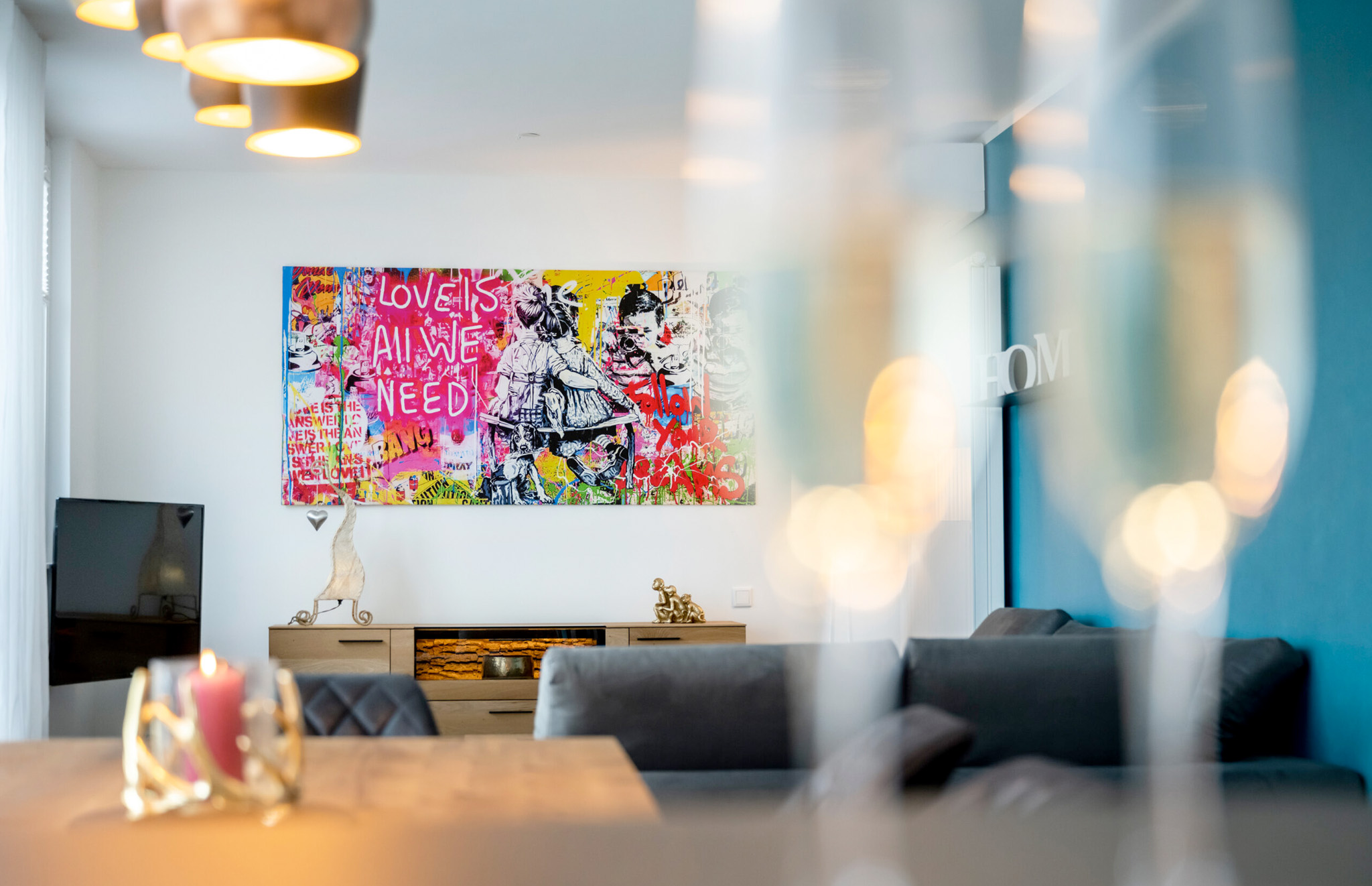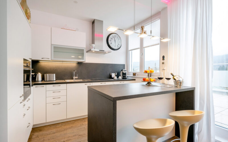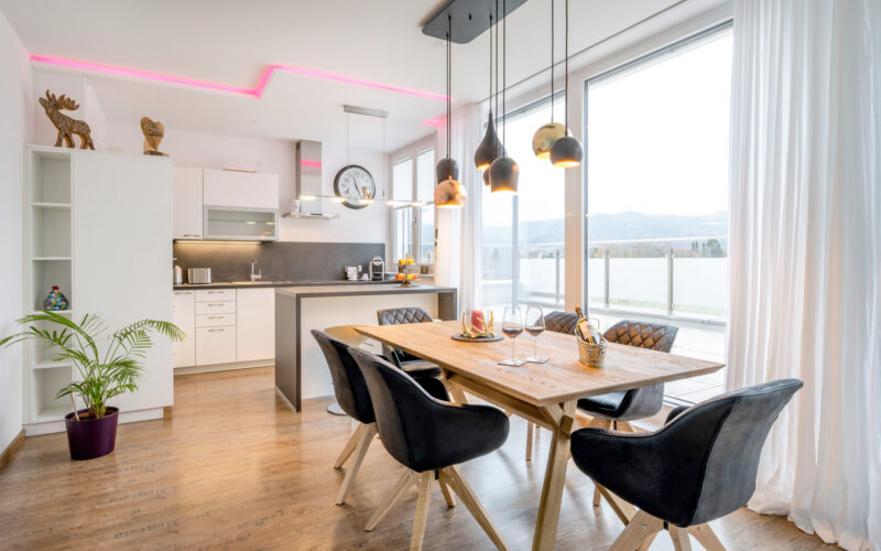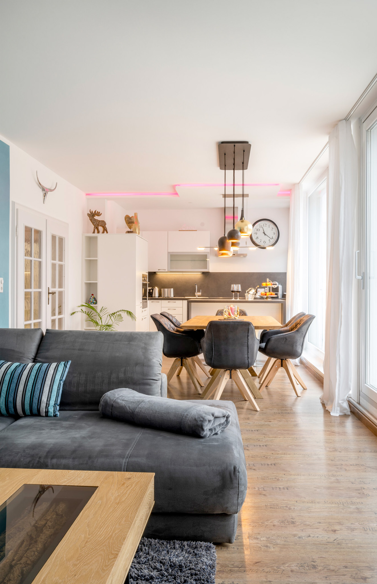 Das vollklimatisierte Penthouse Mountain View mit der besten Aussicht auf die Reichenhaller Bergwelt im 5. Stock mit herrlicher Dachterrasse (50qm) und ca. 33° Grad warmen Hotpot (Badefass) für bis zu 5 Personen (kein Pool). Großzügig, modern und mit hochwertiger Einrichtung ausgestattet. Das stylische Wohlfühlbad mit integriertem Radio, großer Dusche mit Rainshower ist ebenfalls mit einer Badewanne und einem Flat-TV versehen. Ein Traum-Penthouse zum absoluten Wohlfühlen. Der Mindestaufenthalt beträgt 3 Nächte.
