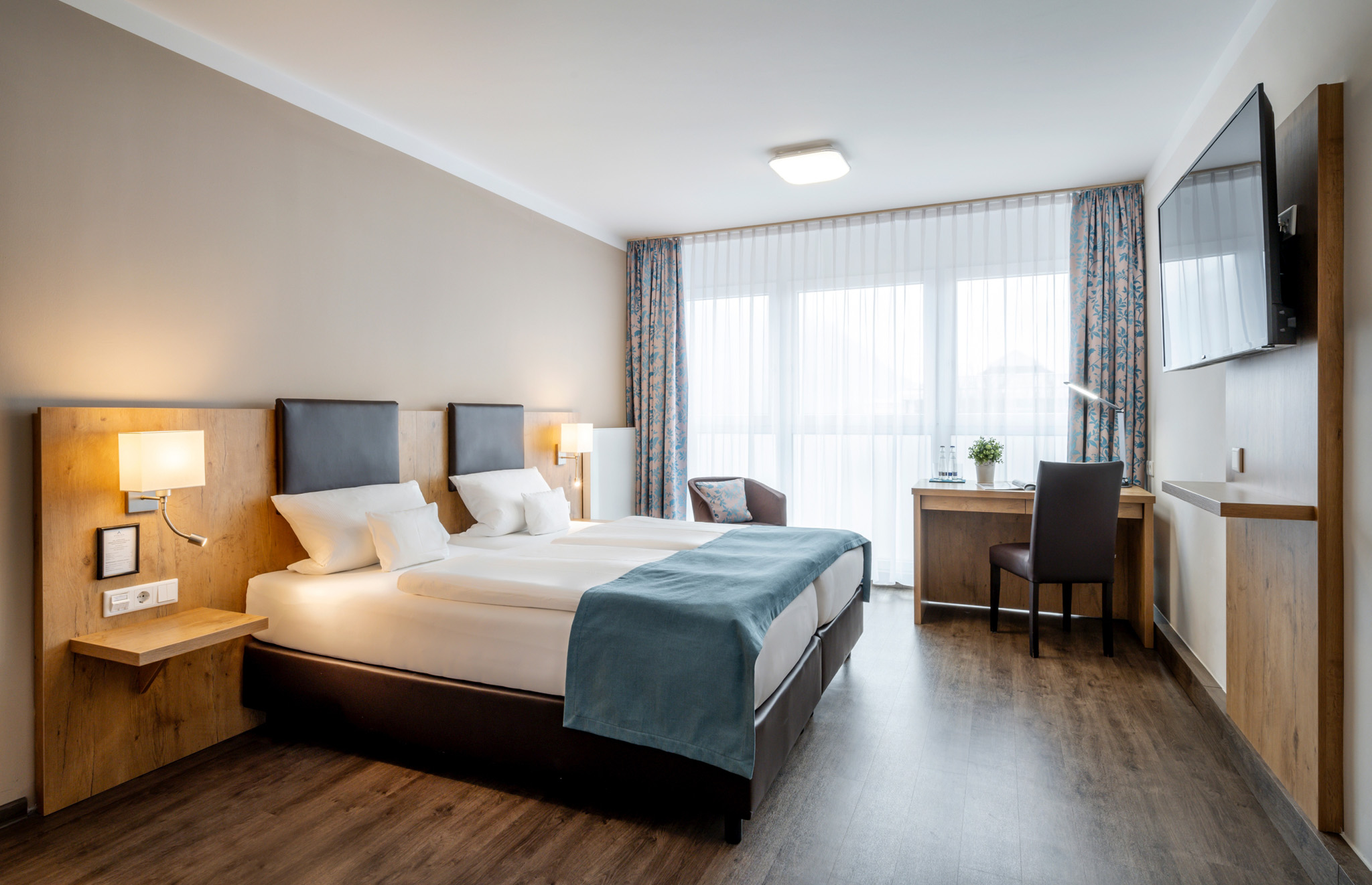 Unsere Zimmer sind als Einzel- oder Doppelzimmer teils auch mit getrennten Betten buchbar. In vielen unserer Zimmer ist eine dritte Aufbettung auf einer Schlafcouch möglich. Bitte setzen Sie sich hierzu mit uns in Verbindung.